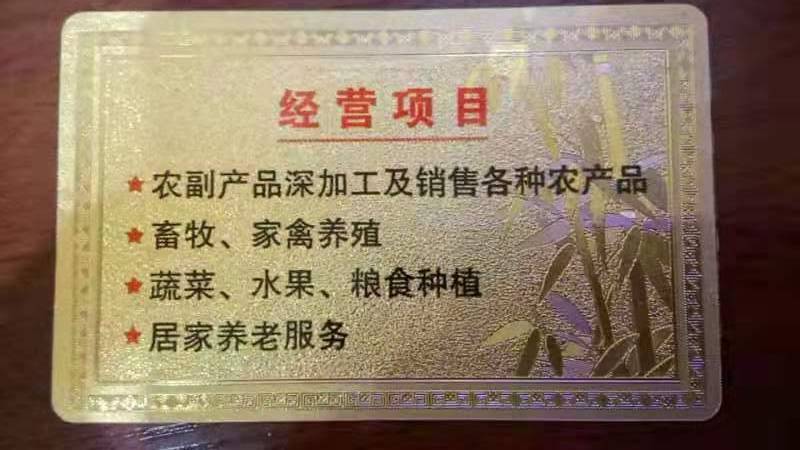 经营范围:农作物种植及农产品销售、咸菜、豆瓣酱生产及销售、畜禽养殖及销售。