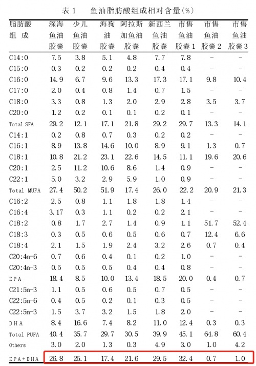 图表数据来源自林虬、宋永康等学者的《气相色谱法分析鱼油胶囊中的脂肪酸组成》